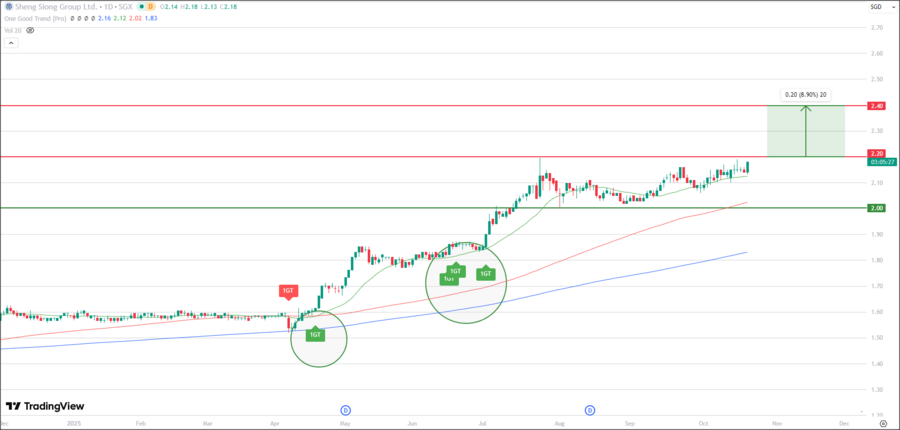 - The neckline of this pattern sits around S$2.35–S$2.37, which previously acted as resistance and is now being tested as support at this moment.